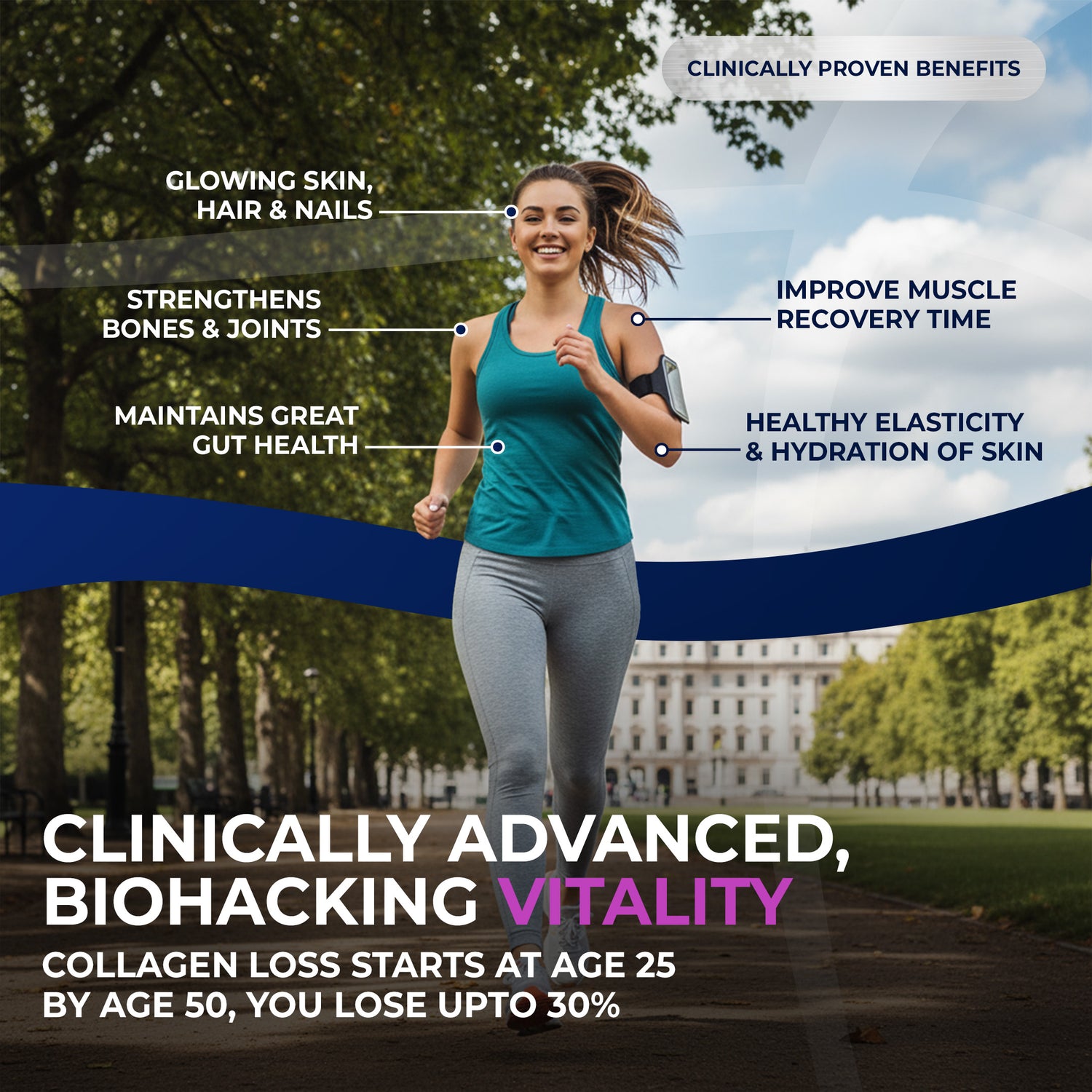 Each serving contains 400mg of Vitamin C, which is the clinically validated co-factor essential for collagen production.